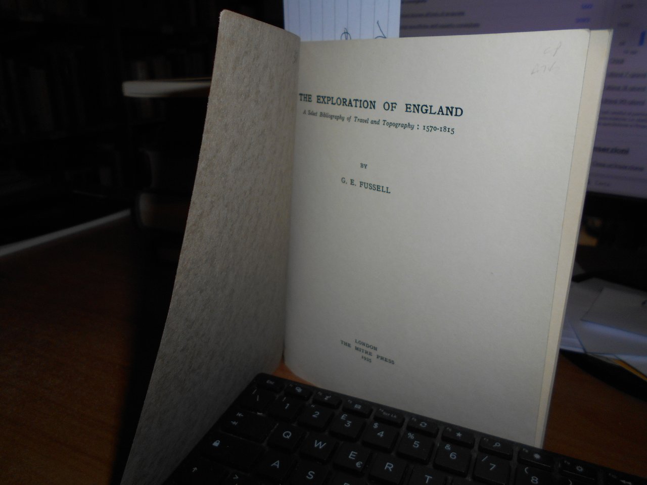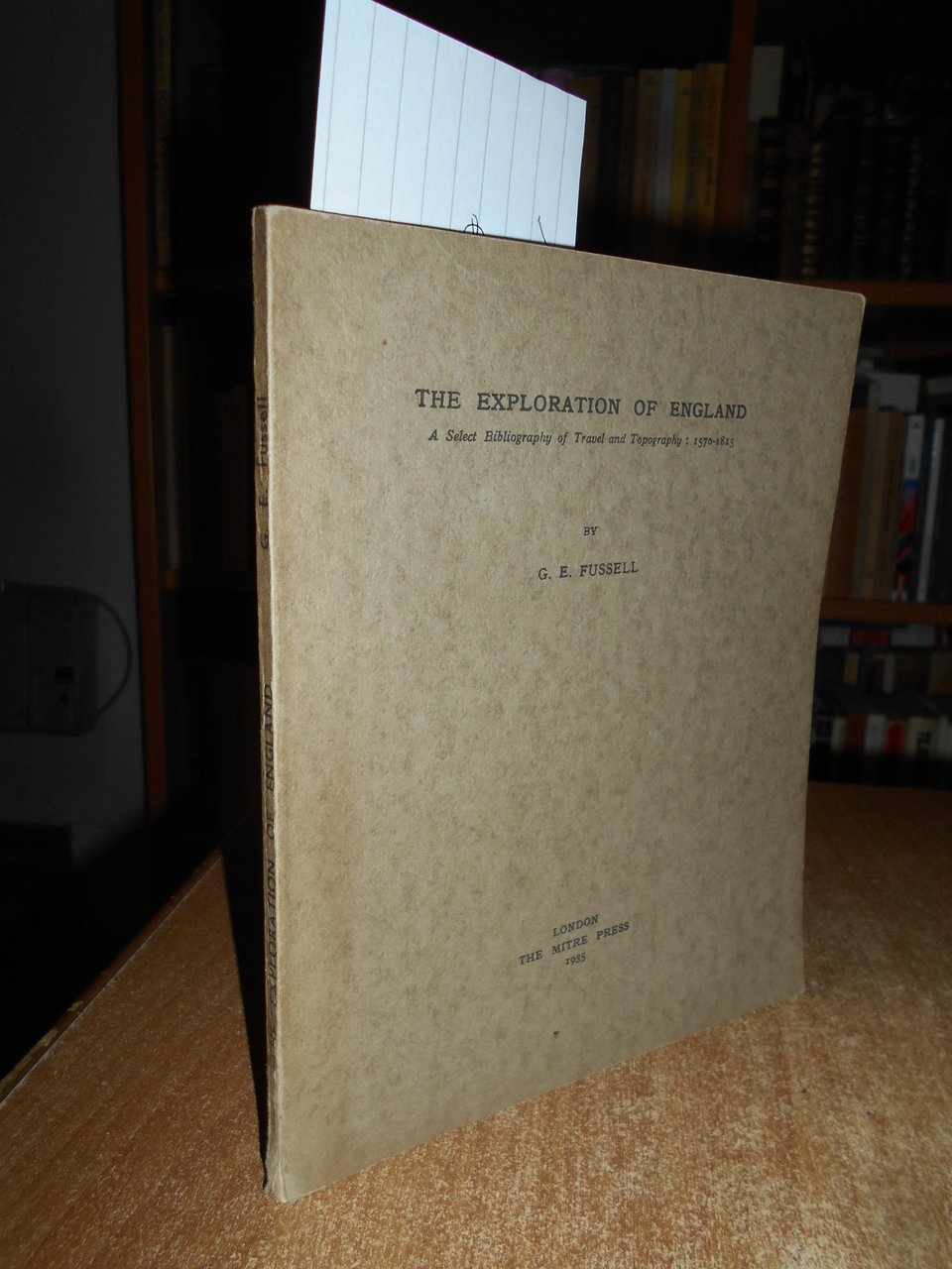 G.E. FUSSELL. London, The Mitre Press, 1935. The Exploration of England. A Select Bibliography of Travel and Topography: 1570-1815.