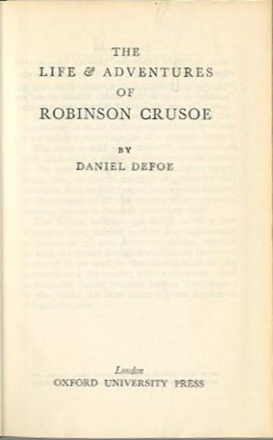 394 p. ; 15 x 10 cm. Le straordinarie avventure nella lingua originale di Robinson Crusoe, unico superstite di un naufragio, che viene trascinato dalle onde sulla spiaggia di un isola deserta. Avvistato il relitto della nave, riesce a recuperare all'interno qualche attrezzo di vario tipo, armi e munizioni. Con grande ingegnosità e abilità sopravvive per molto tempo sull'isola, ma soffre terribilmente la solitudine (il suo unico compagno è un pappagallo). Un giorno Robinson riesce a salvare un selvaggio che era inseguito dai cannibali. Lo ribattezza Venerdì e da quel momento diventerà il suo fedele amico e servitore. Dopo ventotto anni di permanenza sull'isola viene finalmente trovato e riportato in patria da una nave inglese. Legatura editoriale, coperta in cartone rigido telato di colore blu, titolo impresso in oro al dorso, muto il piatto. Nell'anteporta firma di appartenenza ms. con data: 9-9-'83. Codice libreria 3152.