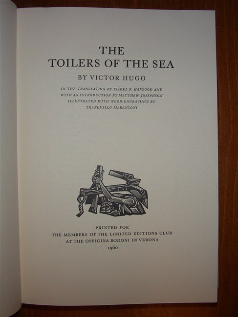 THE TOILERS OF THE SEA by… in the translation by Isabel F. Hapgood and with an introduction by Matthew Josephson illustrated with Wood-Engravings by Tranquillo Marangoni.