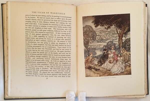 Prima edizione del 1929 del celebre romanzo settecentesco di Oliver Goldsmith.<BR><BR>All'interno sono presenti numerose planches colorate e disegni in bianco e nero di Arthur Rackham (1867-1939) acquarellista pittore illustratore celebre per aver illustrato romanzi famosi come Alice's adventures inw onderland, Rip Van Winckle ecc.<BR><BR>Sovraccoperta mancante. <BR><BR>In ottime condizioni.<BR>Copertina in tela editoriale in ottime condizioni generali con lievi usure ai margini e dorso. Sovraccoperta mancante. Legatura in buone condizioni. Pagine in ottime condizioni con rare fioriture. In 8. Dim. 26x19,5 cm. Pp. 231+(1). First edition of 1929 of the famous novel by Oliver Goldsmith.<BR><BR>Inside there are different coloured plates and black and white drawings by Arthur Rackham (1867-1939) painter illustrator famosu because he illustrated famous novels as Alice's adventures in wonderland, Rip Van Winckle ecc.<BR><BR>Dustjacket is loss. <BR><BR>In very good conditions.<BR>Cloth editorial cover in very good general conditions slightly worn in the edges and spine. Dustjacket is loss. Binding in good conditions. Inside pages are in very good conditions with occasional foxings. In 8. Dim. 26x19,5 cm. Pp. 231+(1).