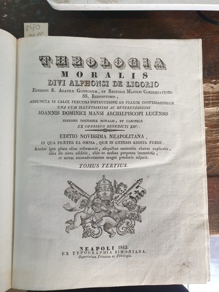 Theologia moralis / divi Alphonsi De Ligorio; adjuncta in calce perutili instructione ad praxim confessariorum una cum Joannis Dominici Mansi epitome doctrinae moralis, et canonicae ex operibus Benedicti XIV. Tomus Primus.
