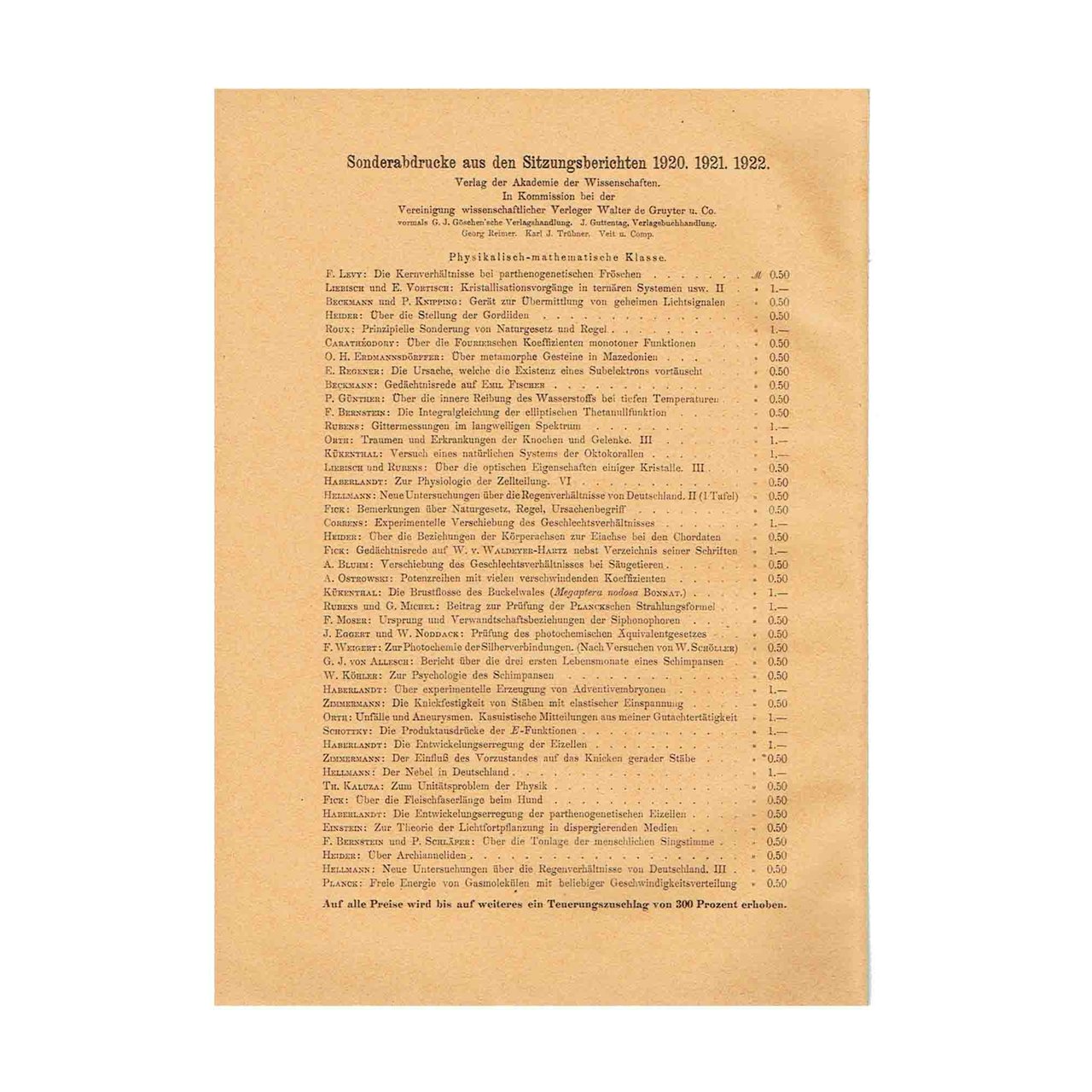 - Berlin: Verlag der Akademie der Wissenschaften (in commission at, Walter de Gruyter [Reichsdruckerei]), 27th February 1922.