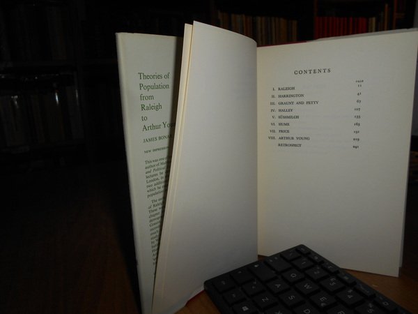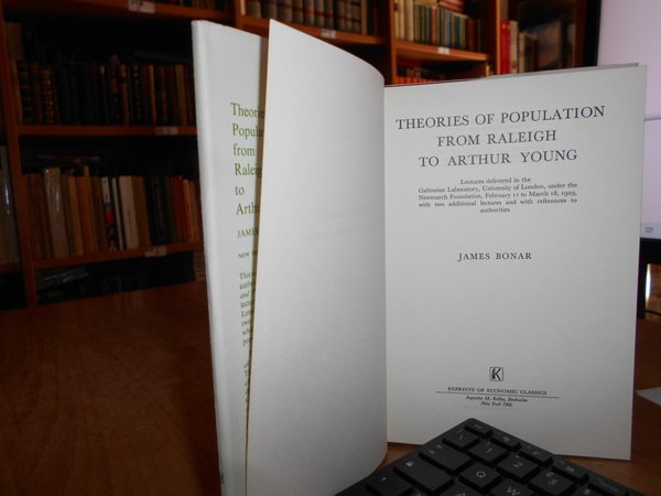 JAMES BONAR. New York, Reprints of Economic Classic, 1966. Theories of Population from Raleigh to Arthur Young. Testo in inglese. In-8° piccolo, tela edit. rossa con titolo in oro al dorso, sovracopertina. 253 pp. In ottimo stato. Uff. B - III - 4