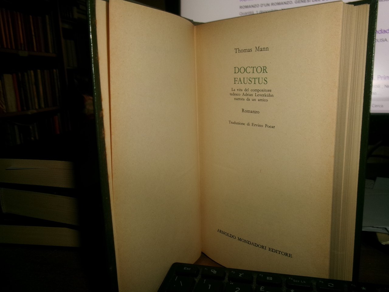 THOMAS MANN. Doctor Faustus romanzo. Milano, Mondadori, (Medusa), 1970. In-16°, similpelle edit. con fregi e titoli in oro. 560 pp. Ottimo stato con le pagine leggermente ingiallite dovute alla qualità della carta. Cas.