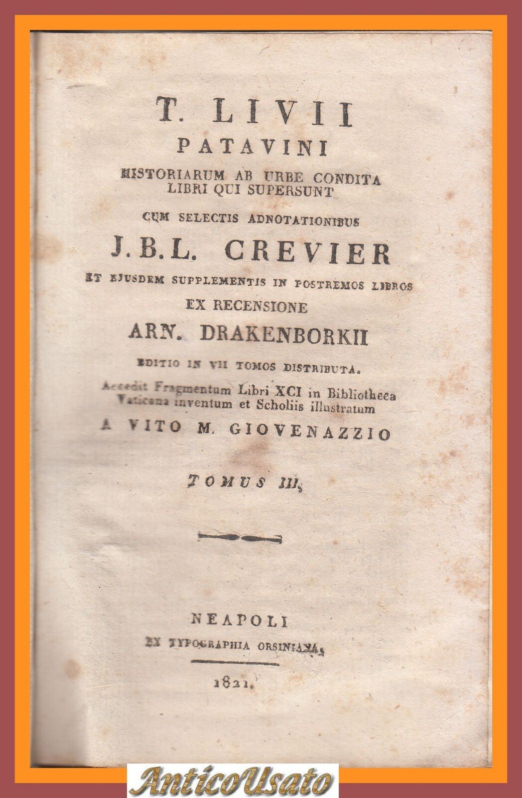 T. LIVII PATAVINI HISTORIARUM AB URBE CONDITA LIBRI QUI SUPERSUNT CUM SELECTIS ADNOTATIONIBUS J.B.L. CREVIER IT AJUSDEM SUPPLEMENTIS IN POSTREMOS LIBROS EX RECENSIONE ARN. DRAKENBORKII EDITIO IN VII TOMOS DISTRIBUTA. Accedit Fragmentum Libri XCI in Bibliotheca Vaticana inventum et Scholiis illustratum A VITO M. GIOVENAZZIO.