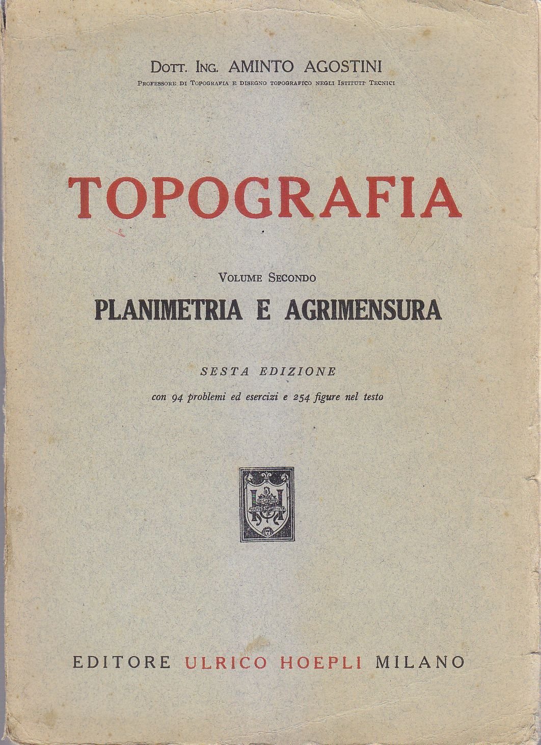 TOPOGRAFIA PLANIMETRIA AGRIMENSURA Volume.2 di Aminto Agostini 1949 Hoepli libro