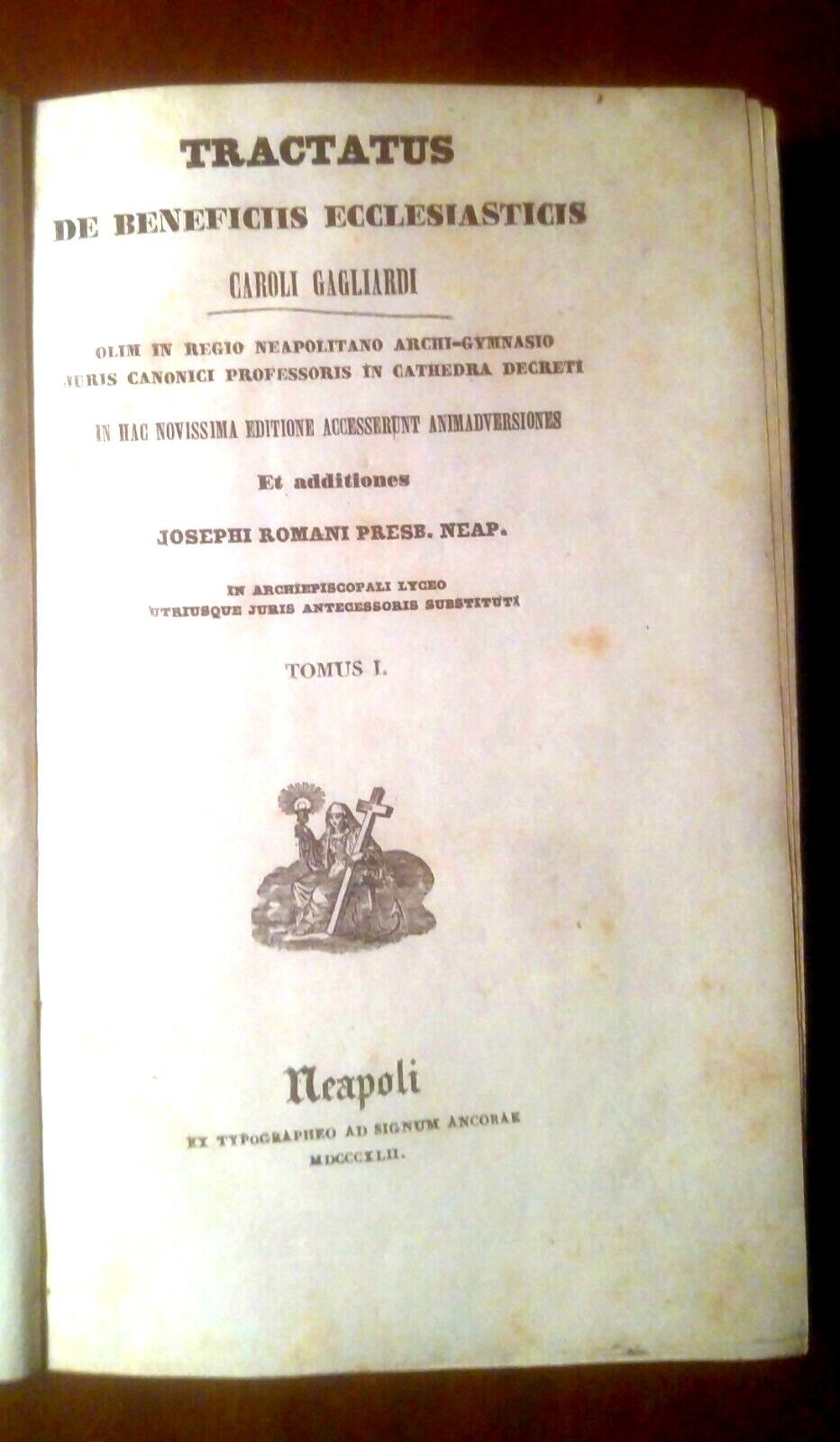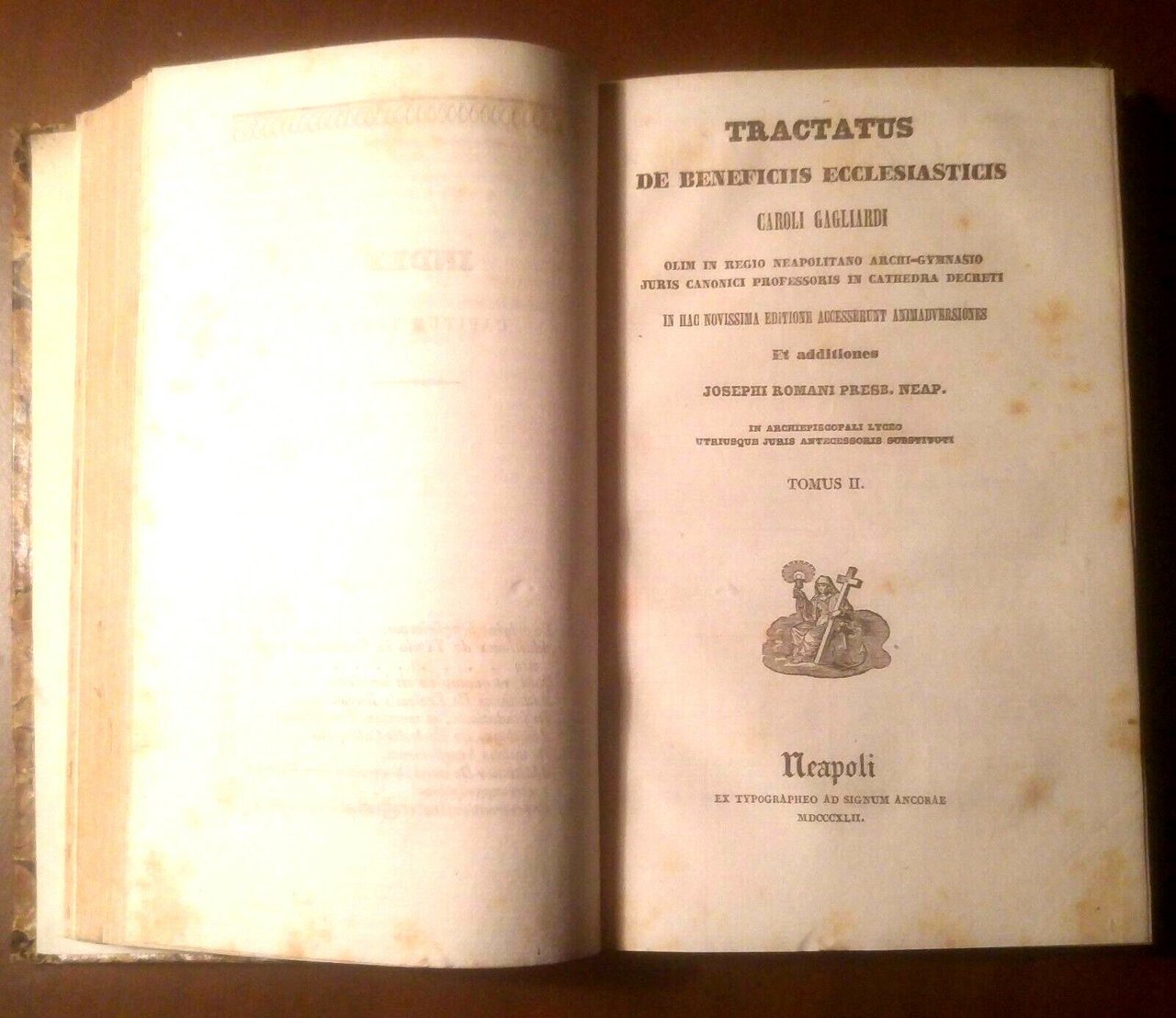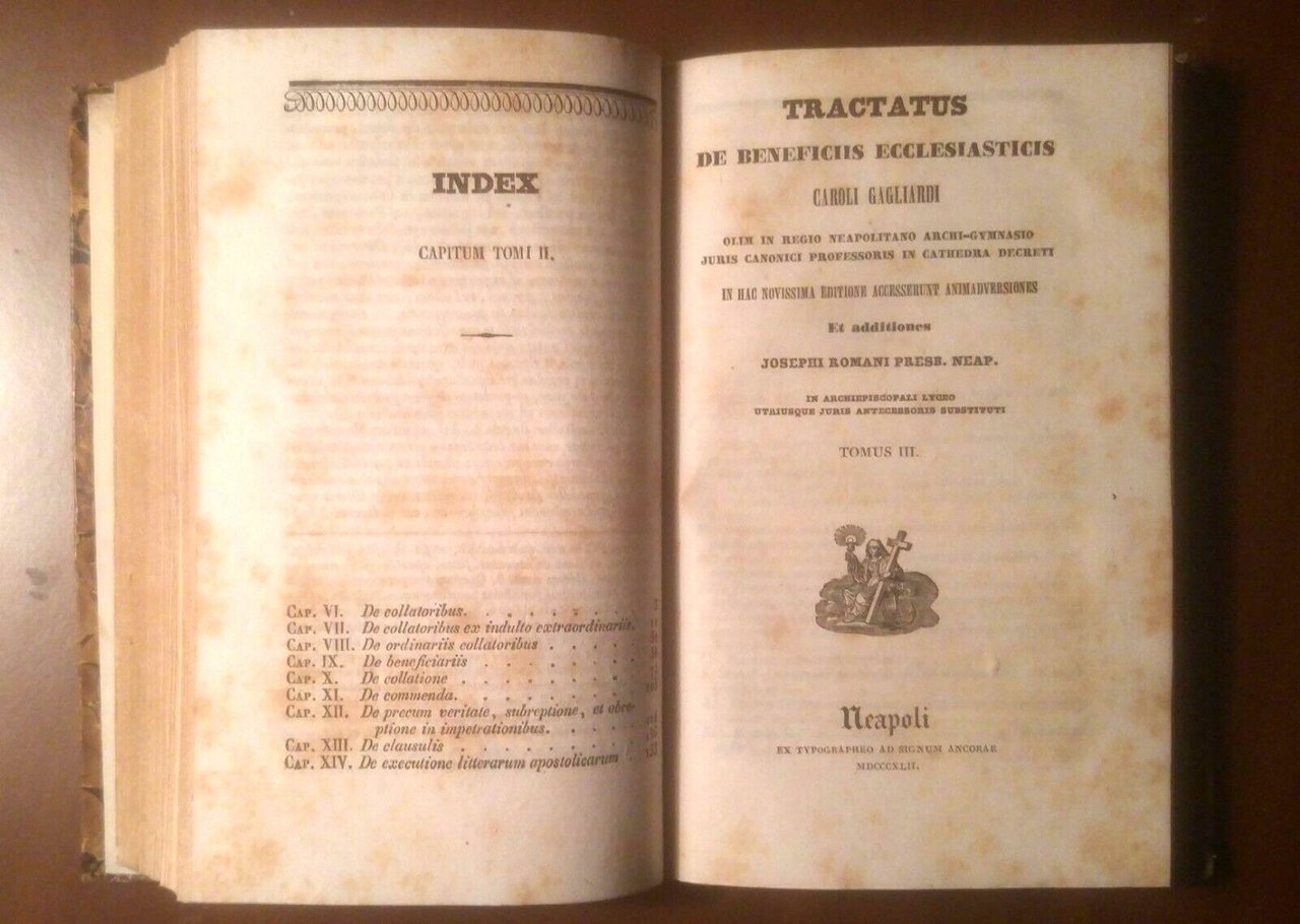 TRACTATUS DE BENEFICIIS ECCLESIASTICIS di Caroli Gagliardi 3 volumi 1842 antico