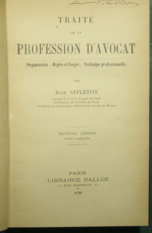 Traitè de la profession d'avocat