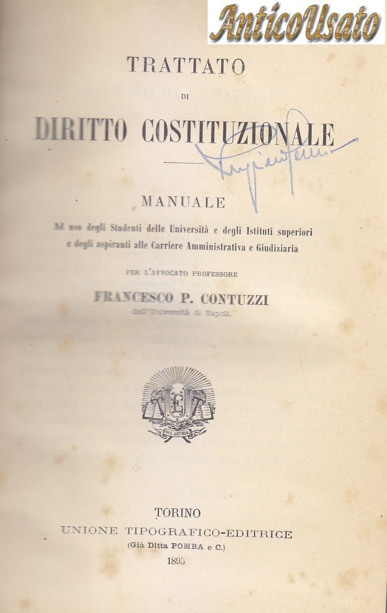 TRATTATO DI DIRITTO COSTITUZIONALE di Francesco Contuzzi 1895 UTET libro antico