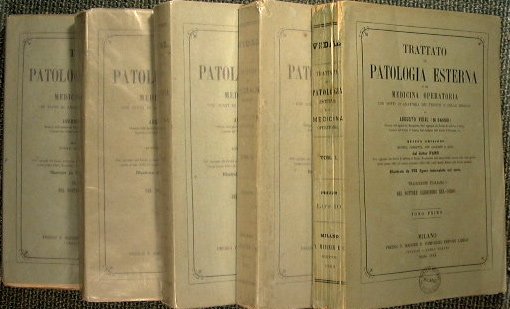 Quinta edizione riveduta e corretta dal Dottor Fano. Traduzione italiana del Dottor. Alessandro Del Corso. - in 8° - pp.XLII, 622 + 622 + 682 + 710 + 672 - Brossura editoriale - 5 volumi - moltissime incisioni n.t. - Mancanza alla brossura e all'angolo inferiore delle ultime pagine del 5° volume, senza perdita di testo,