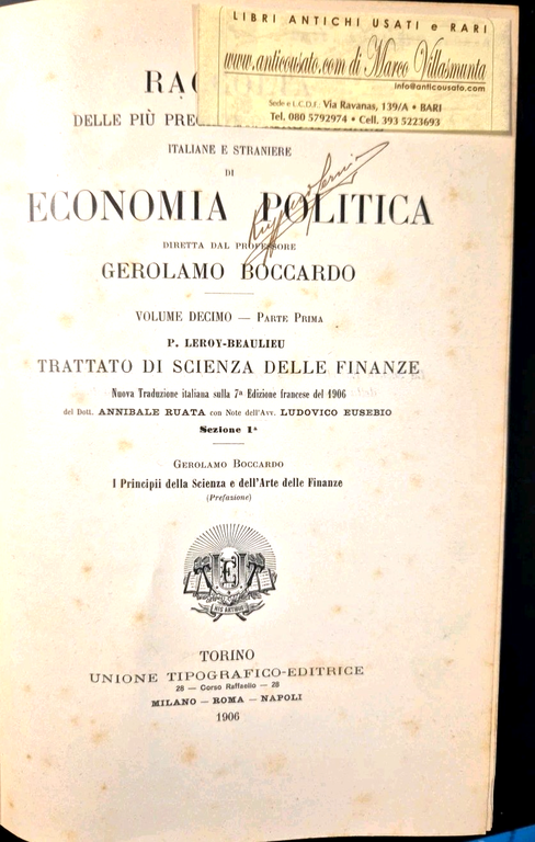 TRATTATO DI SCIENZA DELLE FINANZE Leroy Beaulieu 1906 UTET libro economia politi