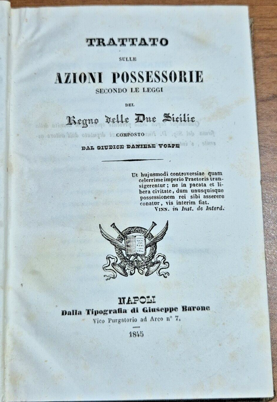 TRATTATO SULLE AZIONI POSSESSORIE Regno delle Due Sicilie di Volpe 1845 Libro