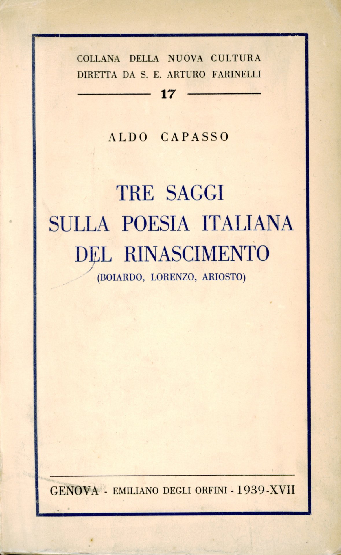 Tre Saggi sulla Poesia italiana del Rinascimento