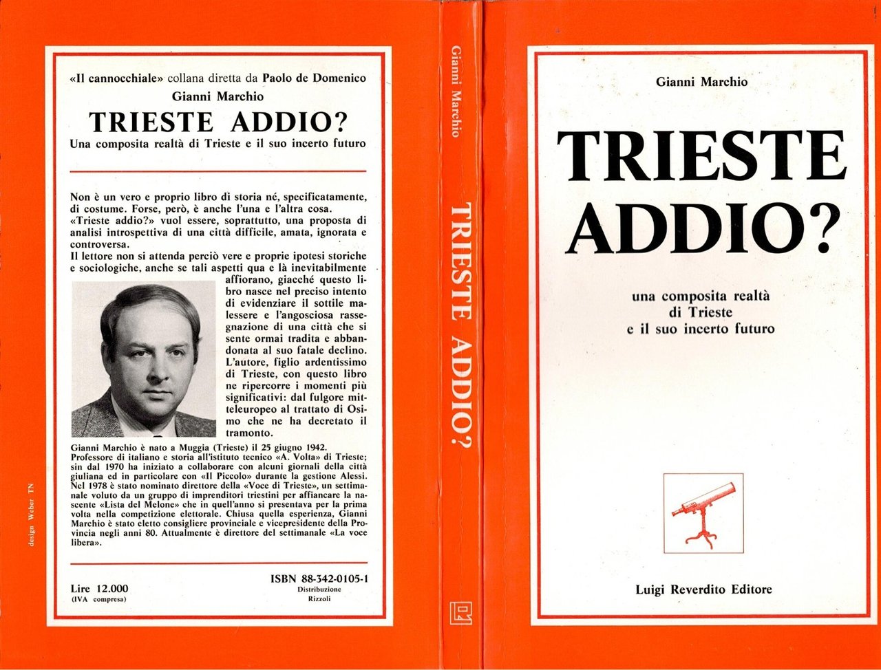 TRIESTE ADDIO? Una composita realtà di Trieste e il suo incerto futuro di Gianni Marchio Reverdito Editore, 1984 . 167 pagine. Copertina editoriale in brossura. Stato di conservazione: molto buono (pagine normalmente ingiallite) Libro usato saggistica