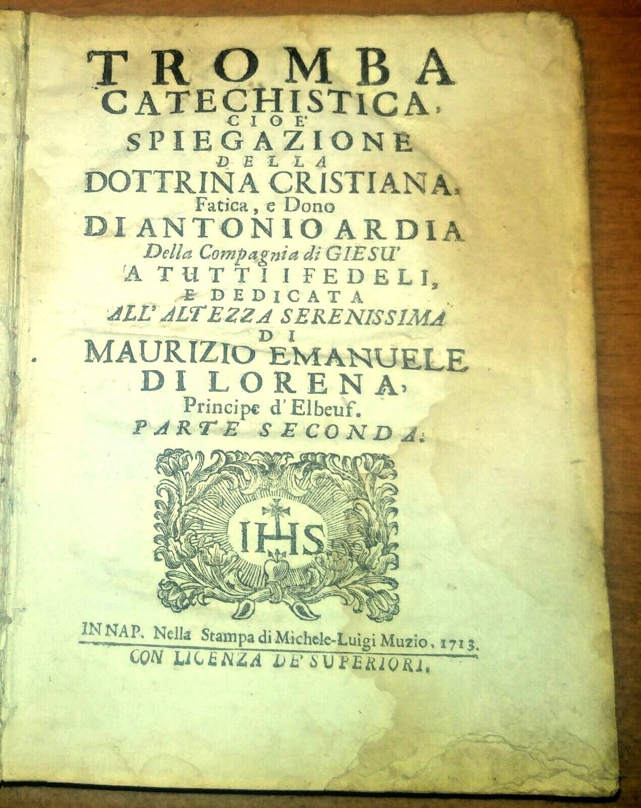 TROMBA CATECHISTICA SPIEGAZIONE DOTTRINA CRISTIANA 2 di Ardia 1713 Libro antico