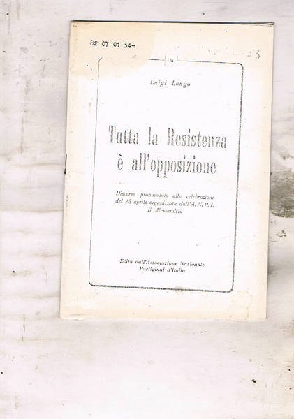 Tutta la Resistenza è all'opposizione. Discorso pronunciato alla celebrazione del 25 aprile organizzata dall'ANPI di Alessandria. Riproduzione in fotocopia.