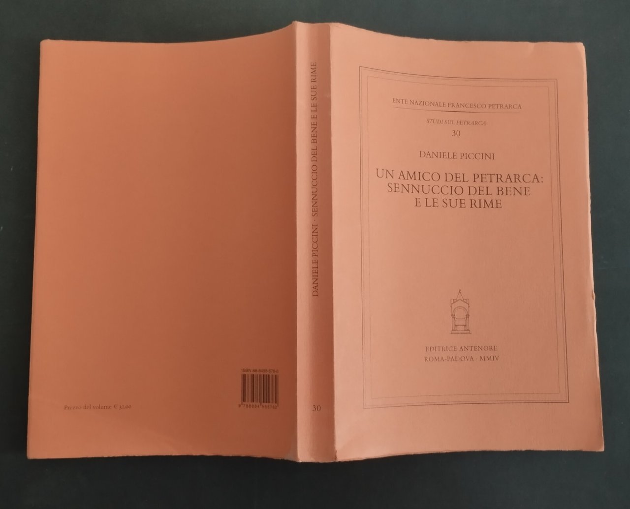 UN AMICO DEL PETRARCA SENNUCCIO DEL BENE E LE SUE RIME di Daniele Piccini. Antenore Editore, 2004. CCXIV, 103 pagine, figure in bianco e nero nel testo. Copertina editoriale in brossura. Stato di conservazione: OTTIMOLibro usato saggistica letteratura italiana poesia