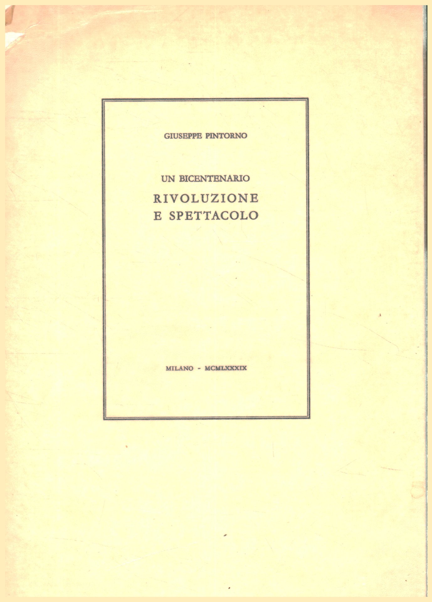 Un bicentenario. Rivoluzione e spettacolo | Livres anciens et modernes | Giuseppe Pintorno