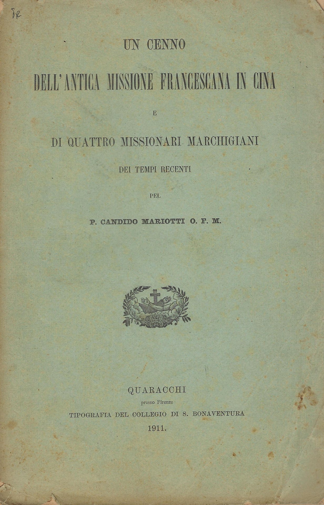 Un cenno dell'antica missione francescana in Cina e di quattro missionari marchigiani dei tempi recenti