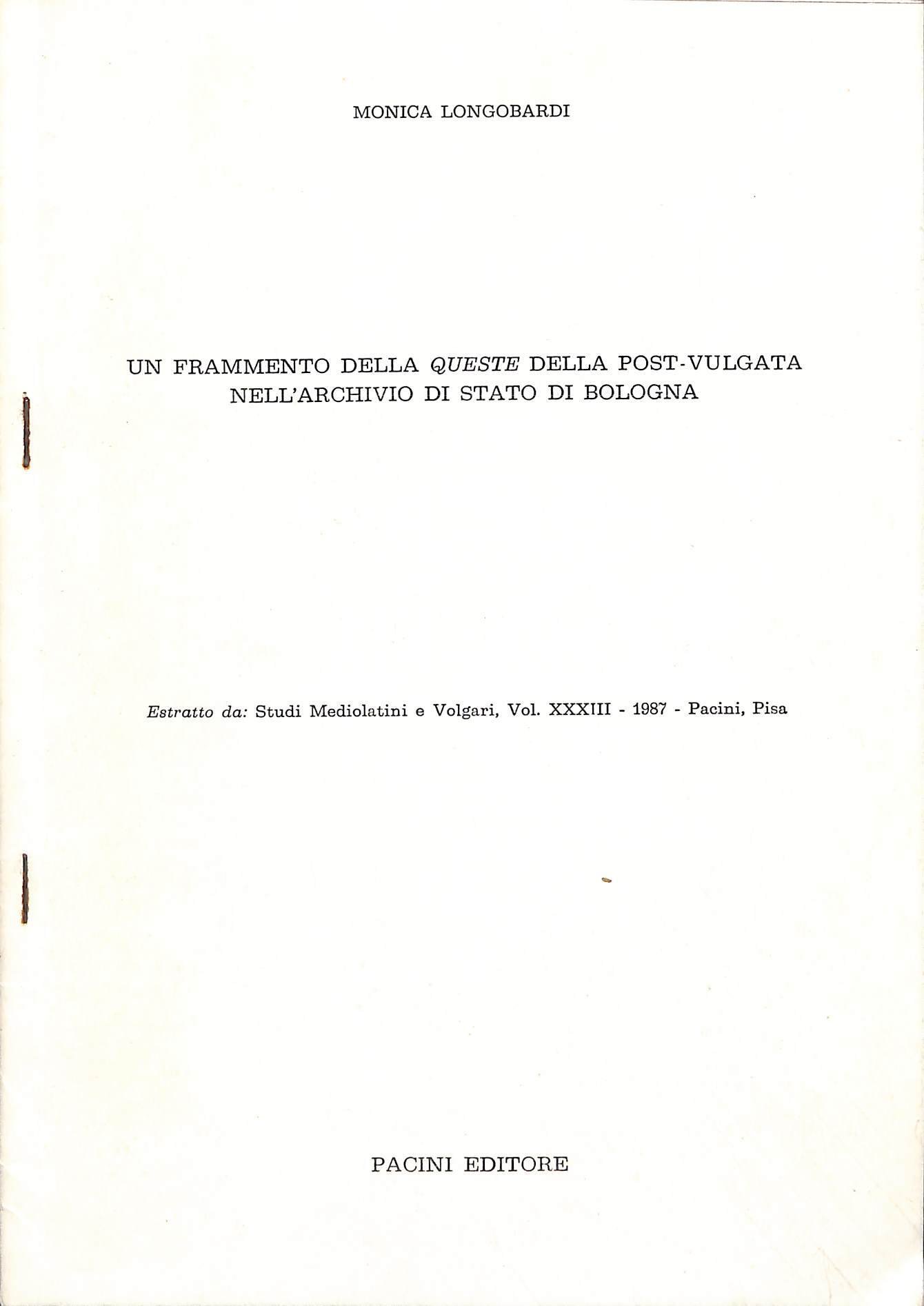 Un frammento della quiete della post-vulgata nell'Archivio di Stato di Bologna