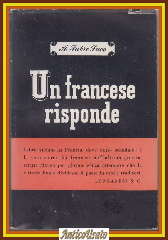 UN FRANCESE RISPONDE di A Fabre Luce 1948 Longanesi giornale Francia Libro 1943