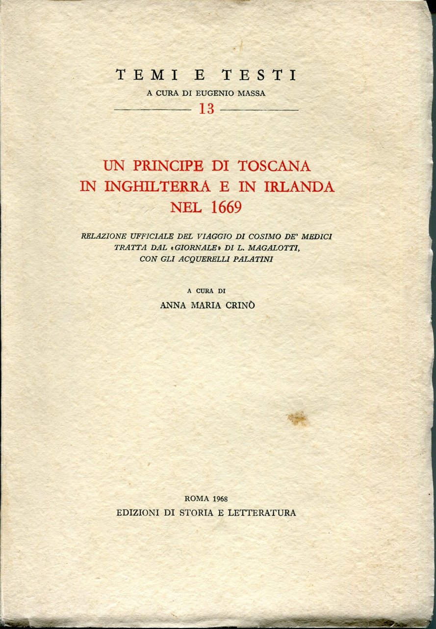 Un principe di Toscana in Inghilterra e in Irlanda nel 1669, relazione ufficiale del viaggio di Cosimo De' Medici tratta dal 'Giornale' di L. Magalotti, con gli acquerelli palatini