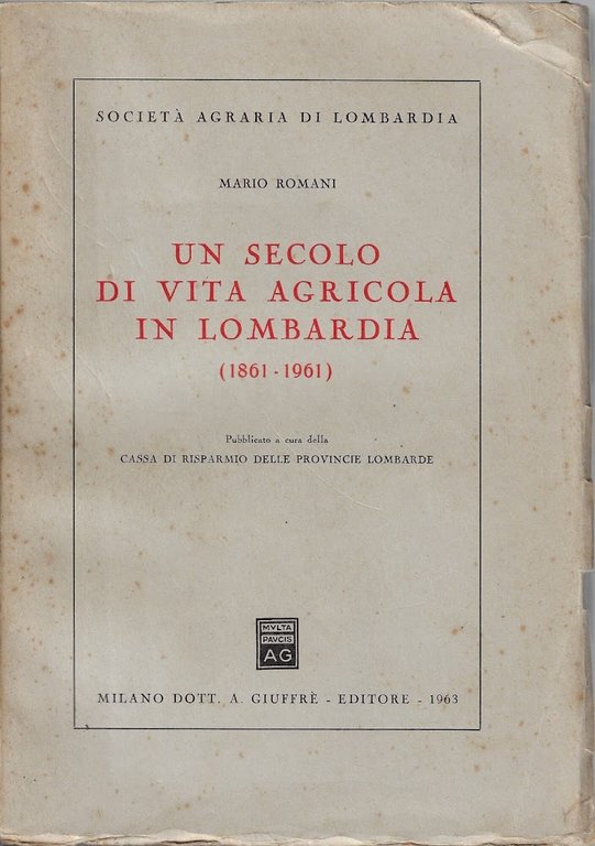 Un secolo di vita agricola in Lombardia : 1861-1961