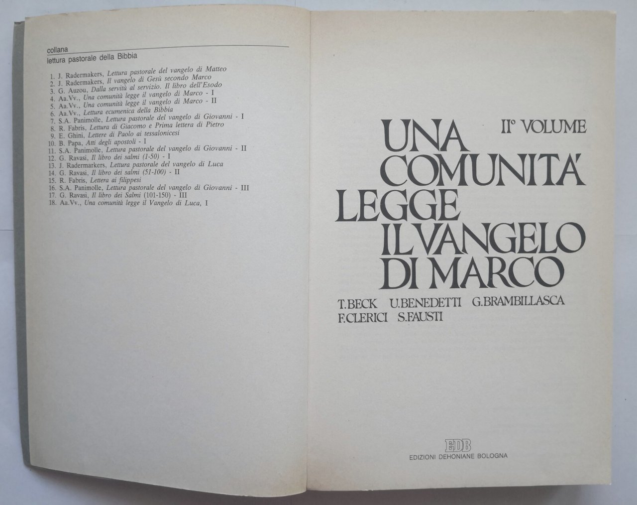 UNA COMUNITÀ LEGGE IL VANGELO DI MARCO Volume II di T. Beck, U. Benedetti, G. Brambillasca, F. Clerici, S. Fausti.