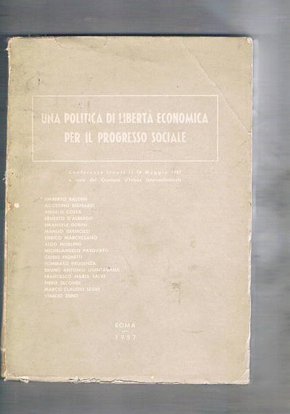 Una politica di libertà economica per il progresso sociale. Conferenze tenute il 19 maggio 1957. Interventi di Baldini, Bignardi, Costa, Dubini, Marchesano, Quintavalle, Salvi Segrè, e altri.