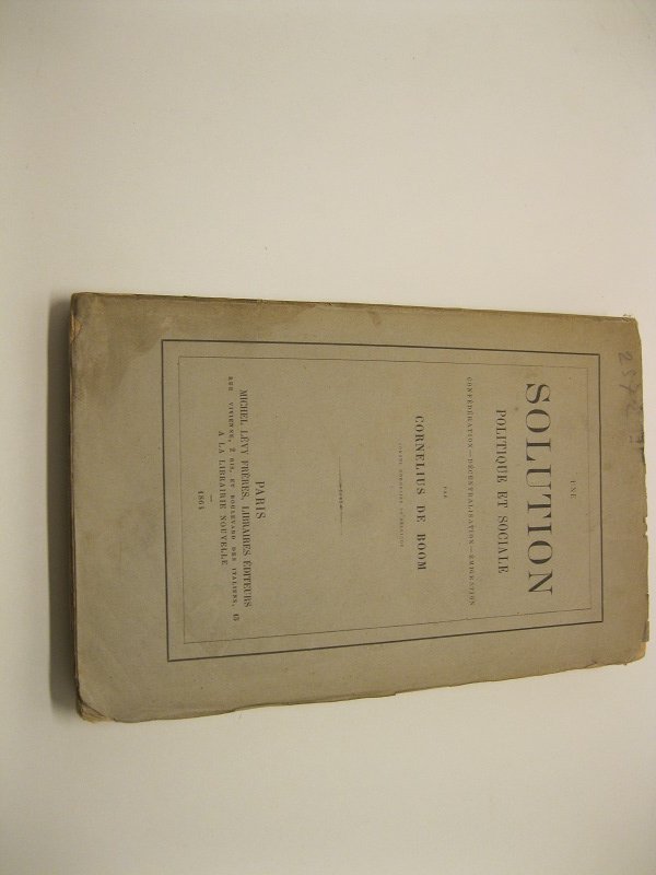 Une solution politique et sociale. Confe'de'ration - decentralisation . Emigration par Cornelius De Boom