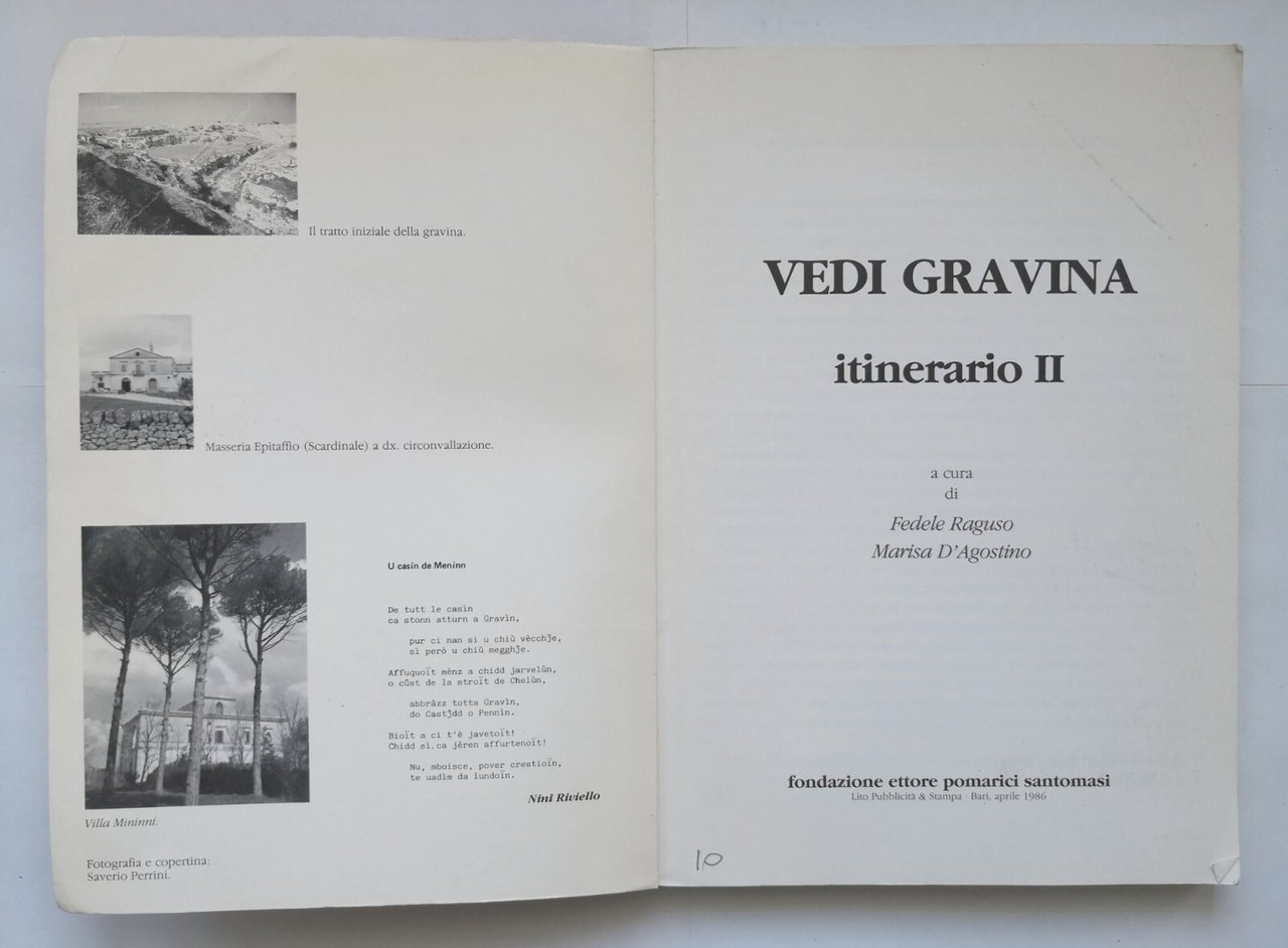VEDI GRAVINA itinerario 2 a cura di Fedele Raguso e Marisa D'Agostino 1986 Libro