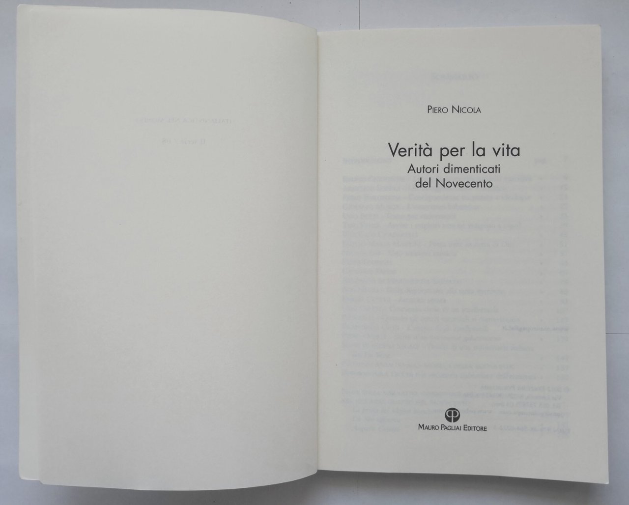VERITÀ PER LA VITA di Piero Nicola. Autori dimenticati del Novecento.