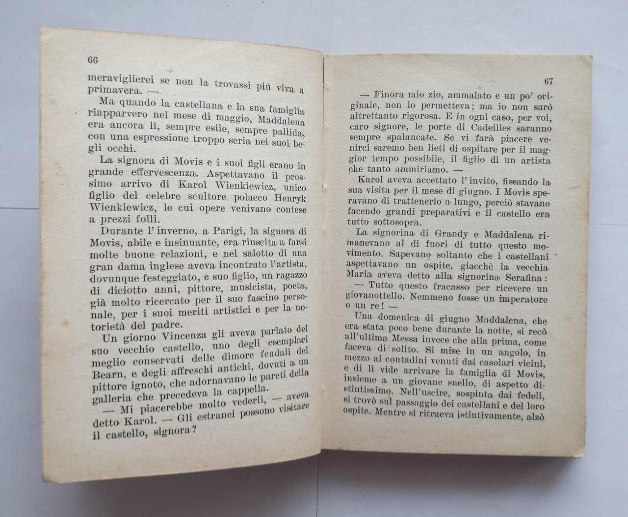 Editore Salani, 1954. Collana "Biblioteca delle signorine". 293 pagine, illustrazione a colori in antiporta. Copertina editoriale in cartone rigido. Stato di conservazione: discreto - buono (pagine ingiallite, fioriture, copertina sciupata con dorso mancante sostituito da fettuccia e residui di nastro adesivo ai piatti) Libro usato narrativa