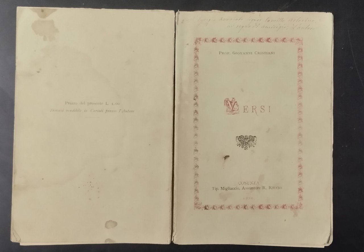 VERSI del Professor Giovanni Cristiani 1886 Cosenza Migliaccio Libro antico