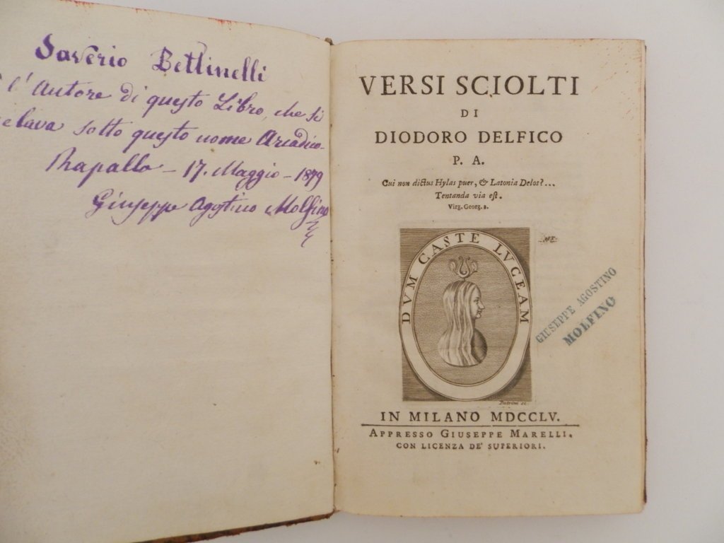 Versi sciolti di Diodoro Delfico P.A | Livres anciens et modernes | Bettinelli Saverio