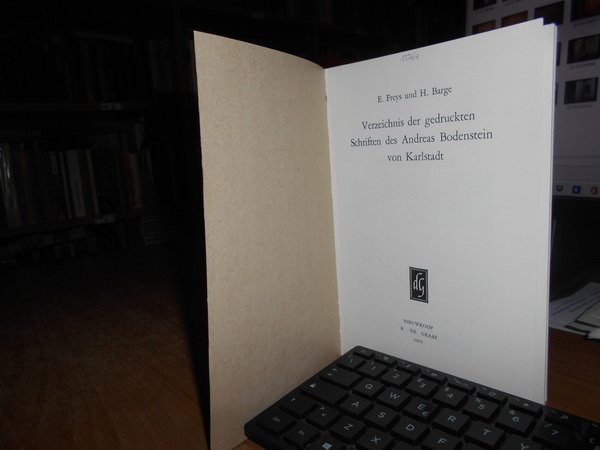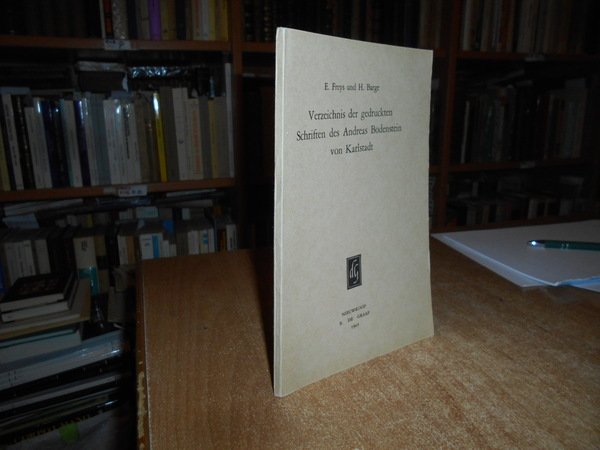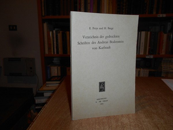 E. Freys und H. Barge. Nieuwkoop, B. De Graaf, 1965. Verzeichnis Der Gedruckten Schriften Des Andreas Bodenstein Von Karlstadt. In-8°, br. edit. 90 pp. Ottimo stato con testo in tedesco. Neg. lett. mod. mob. E entro busta trasp.