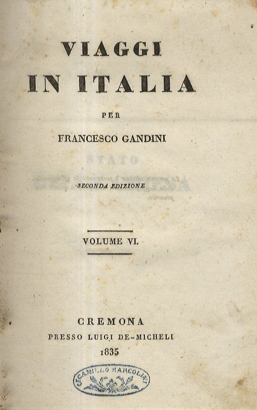 Viaggi in Italia. Seconda edizione. Volume VI: Stato della Chiesa. | Livres anciens et modernes | Gandini Francesco.
