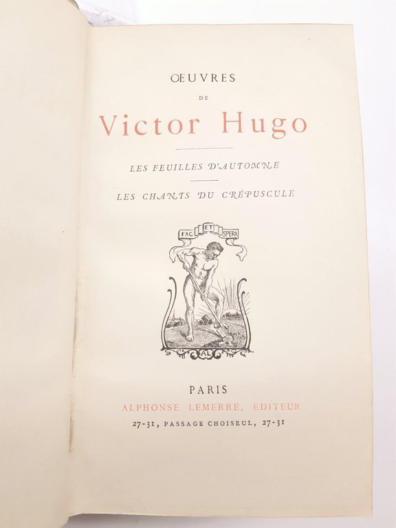 Victor Hugo Le feuilles d'Automne Les chants du crepuscule Lemerre Paris 1850 c.a.