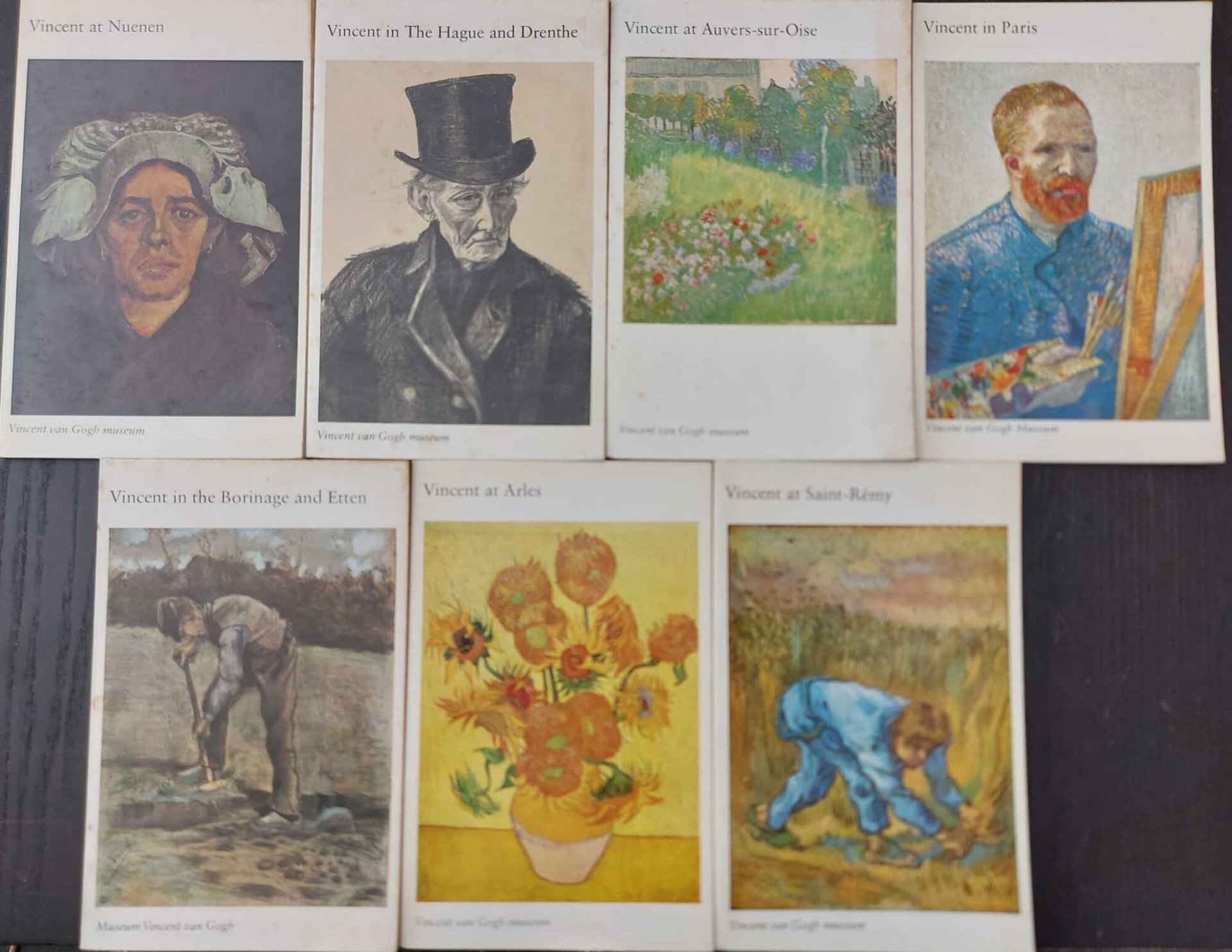 Sette volumetti con illustrazioni in bianco e nero e a colori, che costituiscono l'inter serie pubblicata, 1) Vincent in the Hague and Drenthe, 2)Vincent at Nuenen, 3) Vincent in Paris, 4) Vincent at Arles, 5) Vincent at Saint-Remy, 6) Vincent at Auvers-Sur-Oise, 7) Vincent in the Borinage and Etten Molto buono (Very Good) Normali segni del tempo e piccole fioriture al dorso di alcuni volumi.