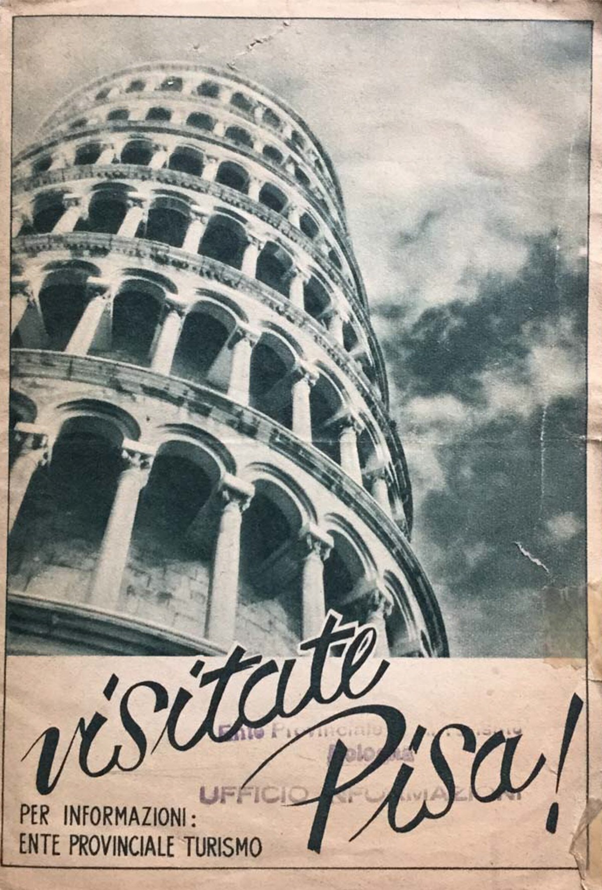 Doppia pianta di Pisa con edifici monumentali e brevi note storiche. Immagini dei pricncipali monumenti e località della provincia. Stampa 1940-1950. Cond.: discrete, alcune lacerazioni Mediocre (Poor) Accettabile