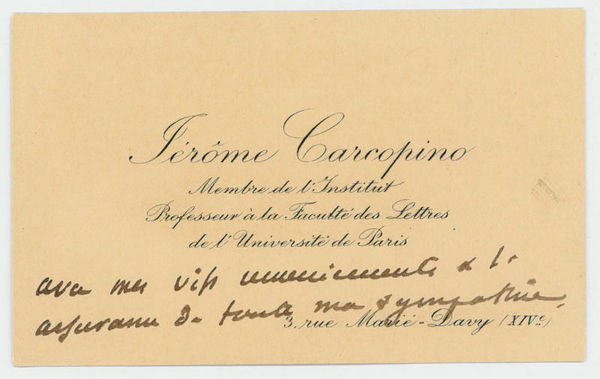 Carcopino, Jérôme, Althistoriker, Archäologe Und Epigraphiker (1, 881-1970).