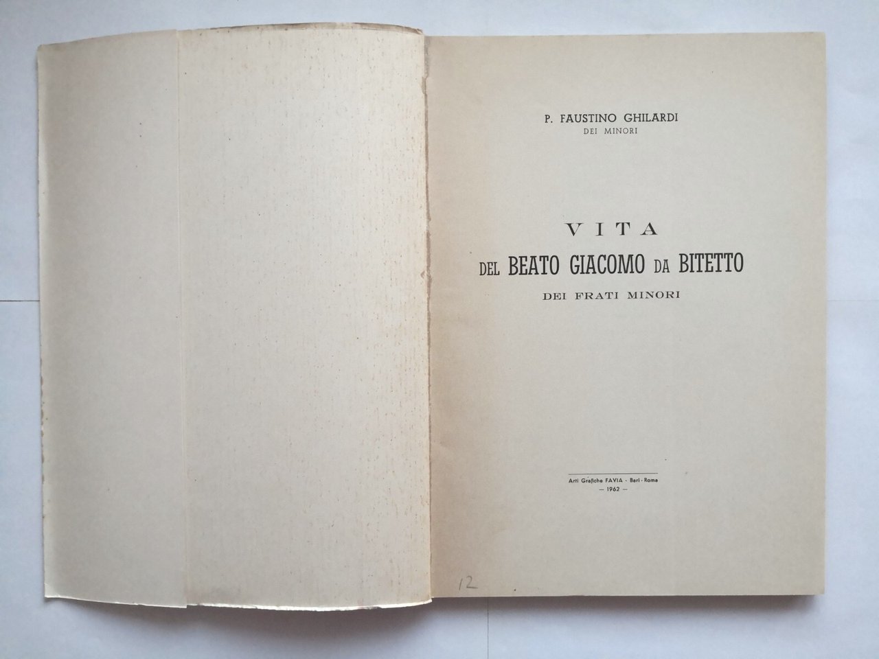 VITA DEL BEATO GIACOMO DA BITETTO DEI FRATI MINORI di Faustino Ghilardi 1962