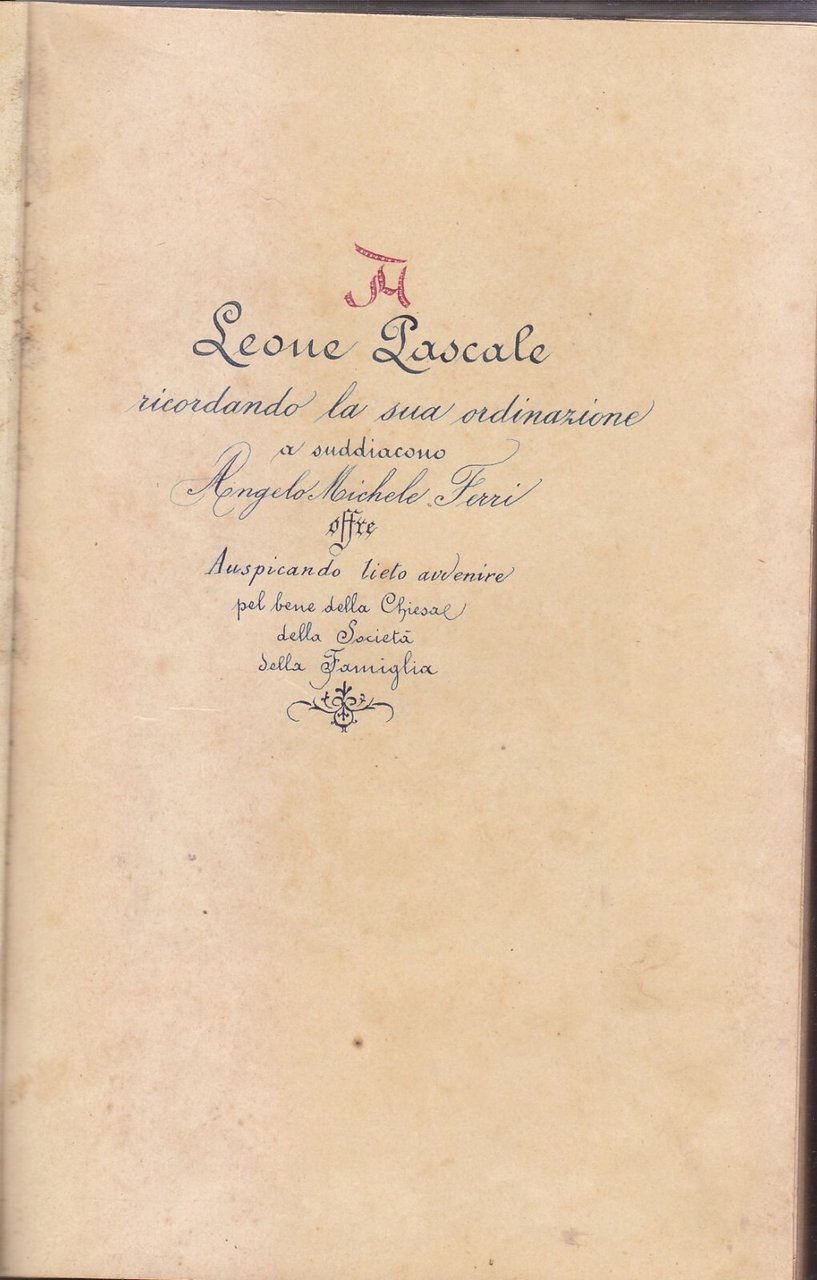 VII, 401 pagine, ritratto della beata in antiporta. Magnifica copertina alle armi in marocchino rosso con fregi ai piatti e titoli e fregi dorati al dorso, tagli dorati. Dedica a penna per la ordinazione a suddiacono. stato di conservazione: molto buono (pagine normalmente ingiallite)