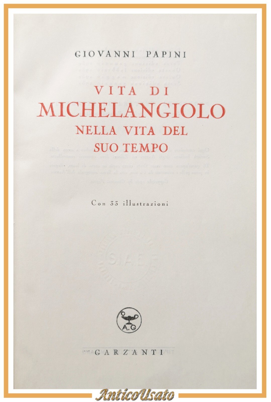 Editore Garzanti, 1951. XV, 655 pagine, 33 illustrazioni in bianco e nero fuori testo. Copertina editoriale in tutta tela. Stato di conservazione: molto buono (pagine normalmente ingiallite) Libro usato saggistica biografia arte Buonarroti