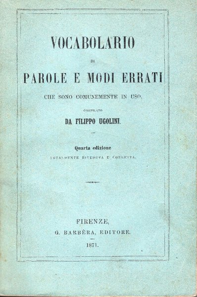 Vocabolario di parole e modi errati che sono comunemente in uso