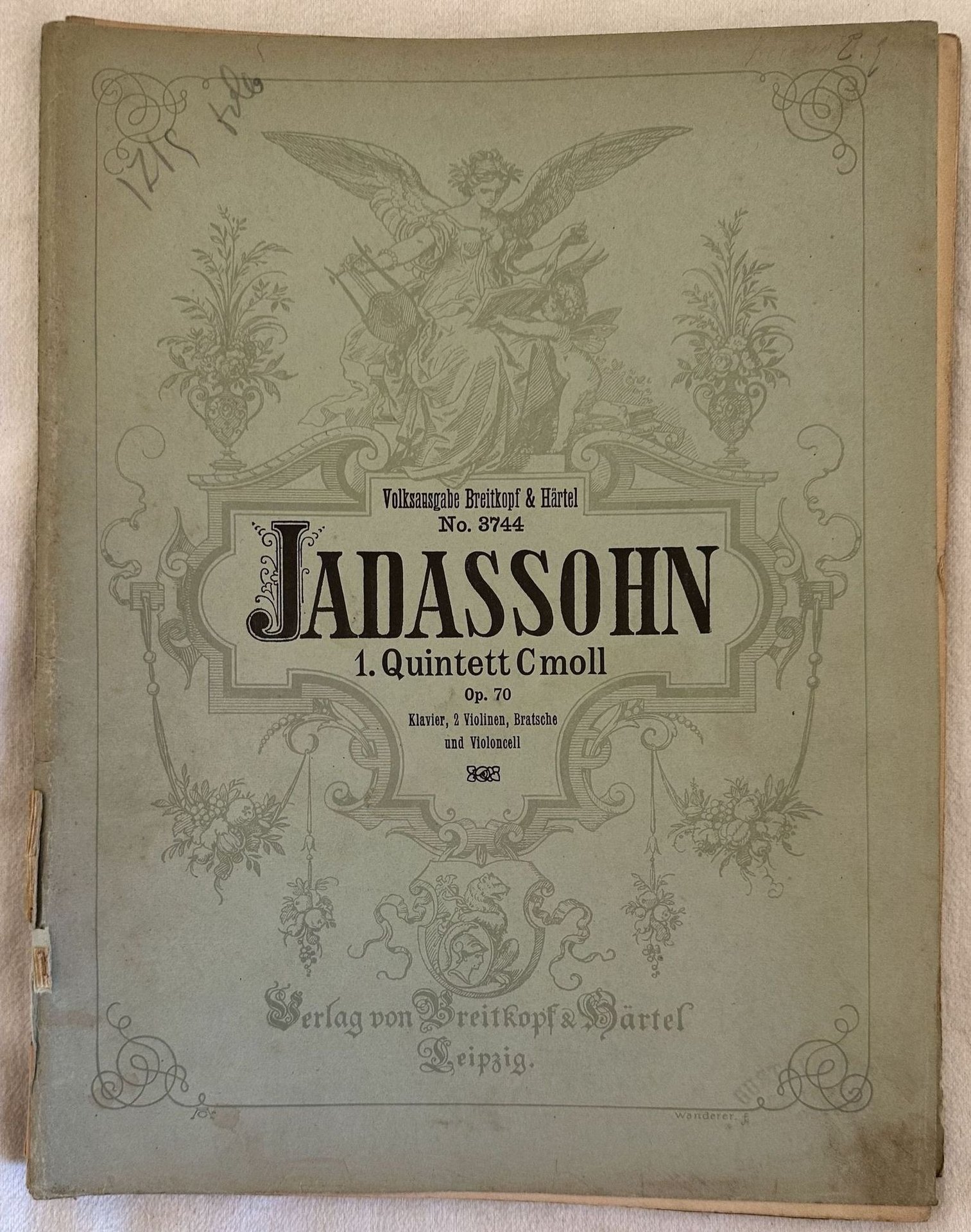 VOLKSAUSGABE BREITKOPF & HARTEL NO 3744 JADASSOHN 1 QUINTETT CMOLL OP. 70 KLAVIER, 2 VIOLINEN, BRATSCHE UND VIOLONCELL
