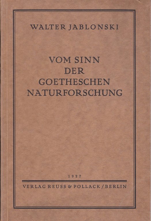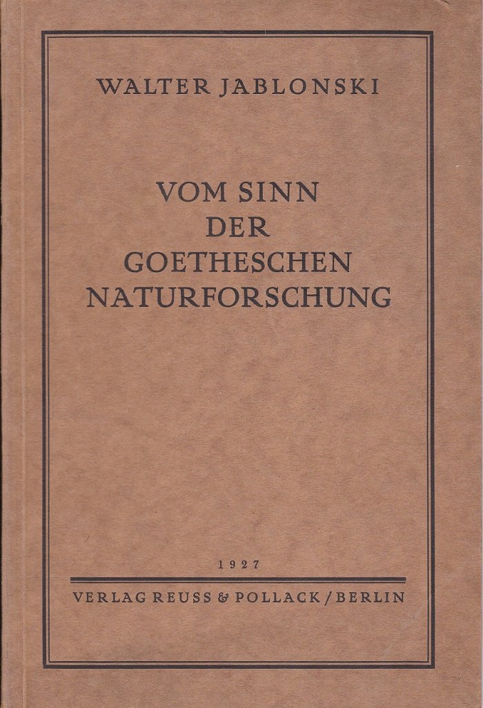 Vom Sinn der Goetheschen Naturforschung. (Widmung des Autors).
