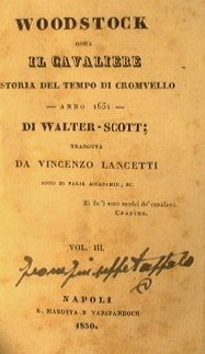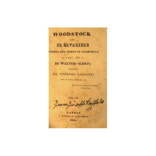 Ossia il cavaliere. Storia del tempo di Cromvello - Anno 1651 - Tradotta da Vincenzo Lancetti, socio da varie accademie, ecc. - Vol. III e IV - in 16° - pp.194 + 232 - Mezza tela - Due tomi in uno - Titolo con etichetta al dorso