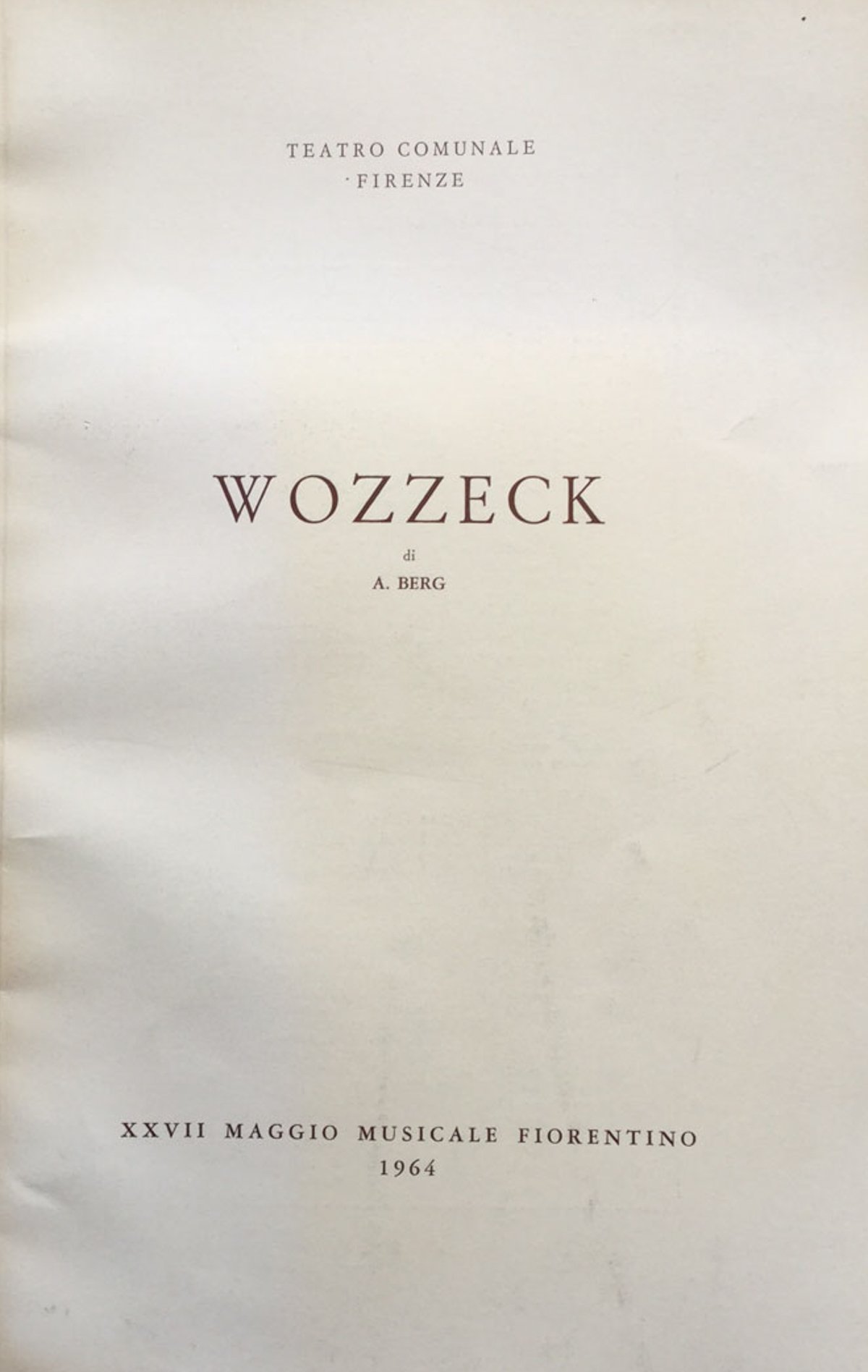 Firenze, Maggio Musicale Fiorentino, 1964. Note biografiche e Guida all'ascolto dell'opera musicale in 3 atti di alan Berg. XXVII Maggio Musicale Fiorentino. Brossura editoriale, in 4o,75 pp., ill. in ner n.t. 780 - Ba In Quarti ( 24-30cm ) Buono (Good) Buono