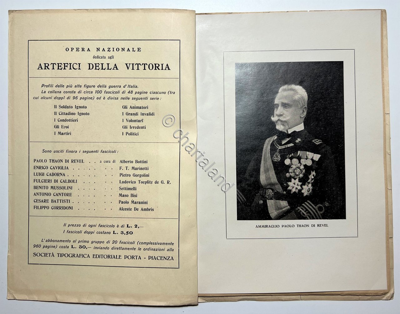WWI - A. Bottini - L'ammiraglio Paolo Thaon di Revel - ed. 1922